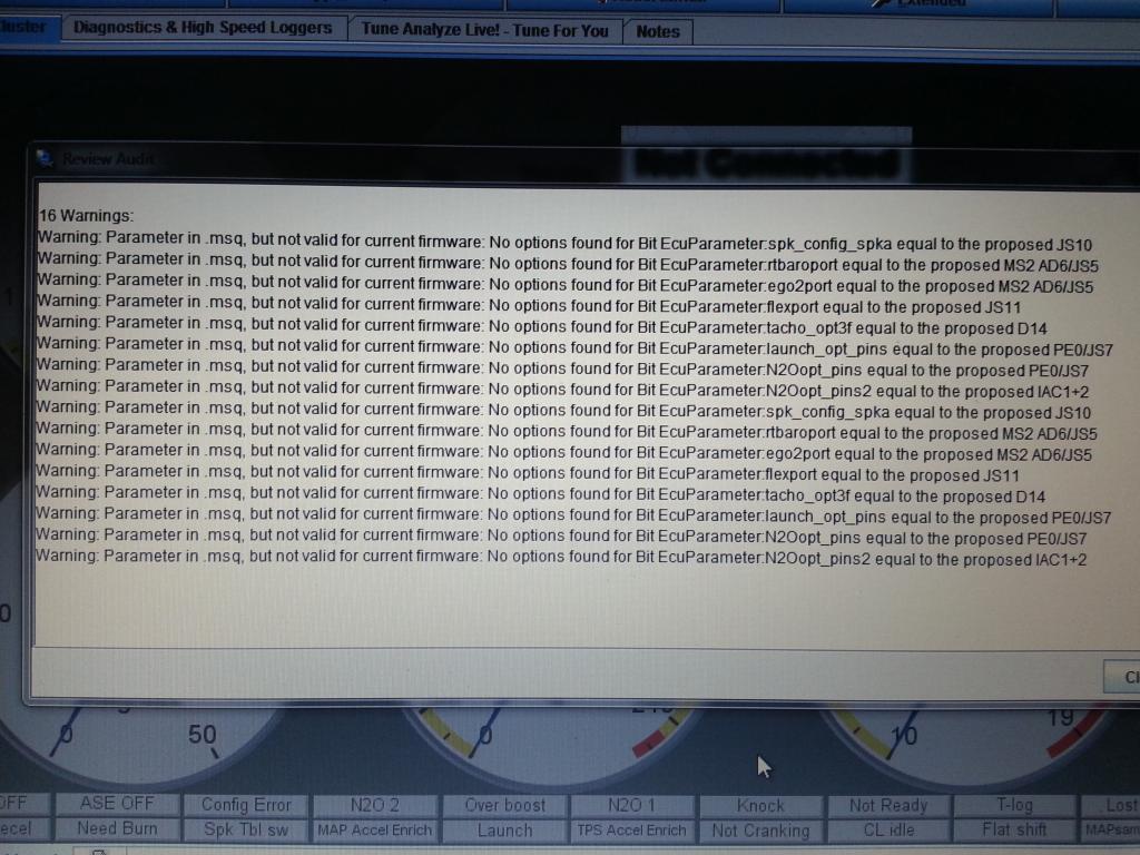 Here's the error message I'm getting when I load tune on laptop before connecting to car: