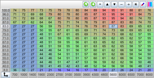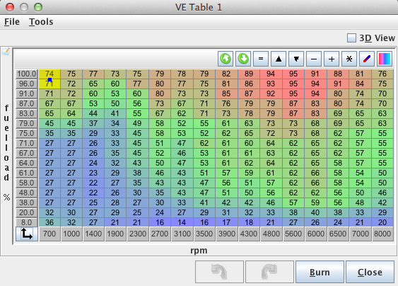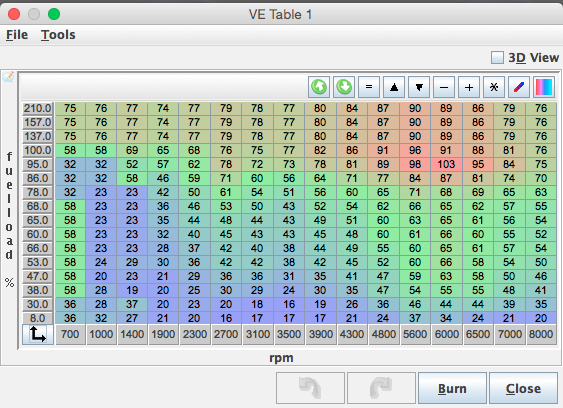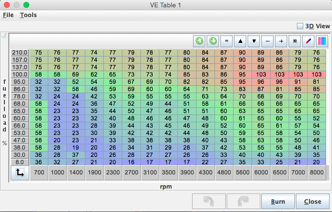 I've recently done some mild DIY porting and bowl work on my N/A build, with the addition of some big cams, intake and exhaust differ but they are around 272 degrees duration, a bit over 9mm lift and some decent overlap installed "straight up" for now. I get a stable but lopey idle at 1,000 RPM at about 75 ish kpa, so I need a lot of resolution in the VE table. I've pressurized the intake and I'm 100% certain there are no leaks. Brake assist is not so great either so I may delete the booster, but thats getting off topic, but here's how I scaled the VE table. Please ignore the VE numbers, its just a start/idle tune at this point. I started with 8kpa just to control deep vacuum, and then from there went 40 on up.