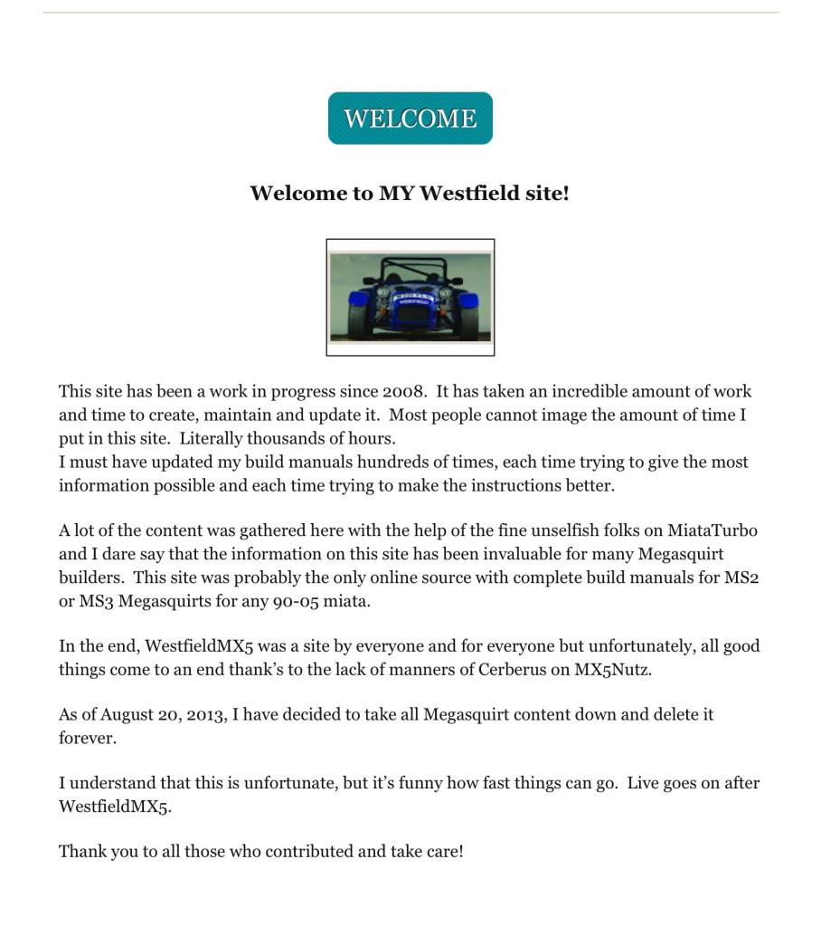 Dammit - Franks site was a Holy Grail for all the Megasquirt DIY builders.