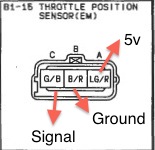I am confused though because black/light green doesn't show up as a throttle related wire. Mind you, my wiring diagrams aren't for a 2003 but I have one for both a 2000 and a 2001 and they both agree with the colors and signals I posted here.