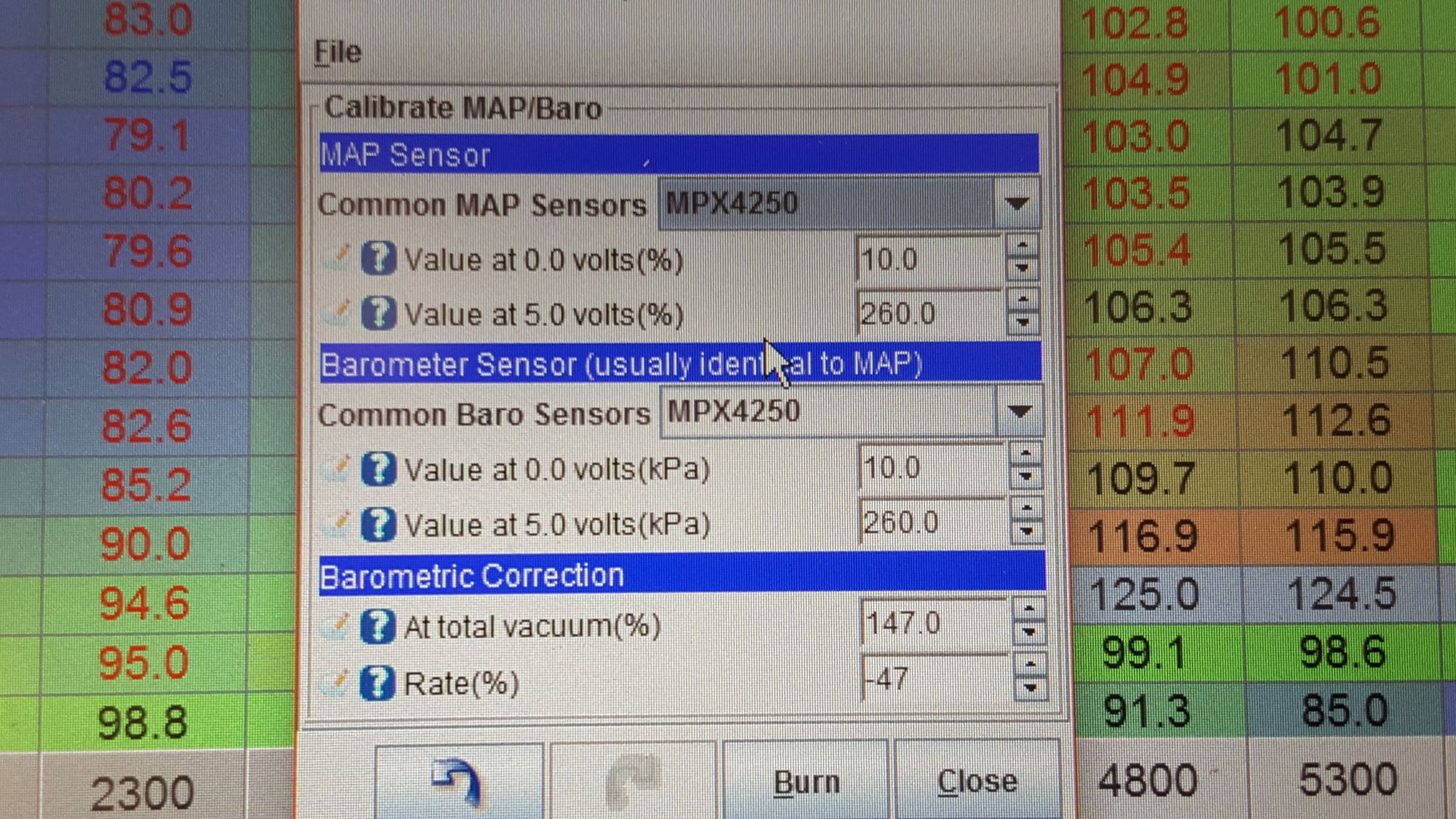 Only thing I know of without looking at the diagrams is an ECU ground issue. That to my knowledge is the only ground for the internal MAP sensor. Which if that if screwy than lots of things are screwy. I swear I did all I could to ensure great grounds. My retired EE father helped wire the car, but neither of us know this system.