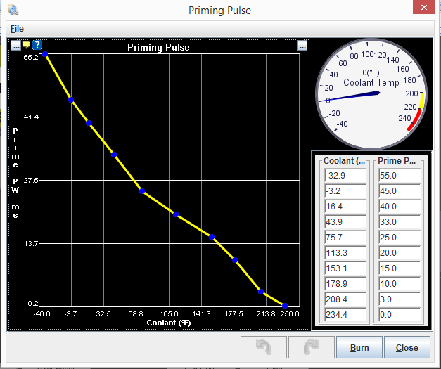 2nd, the factory ECU probably has an additional enrichment for hot restarts - or it may increase the dead-time for hot restarts. It may also have a timer which counts how long a hot engine was off before re-starting.