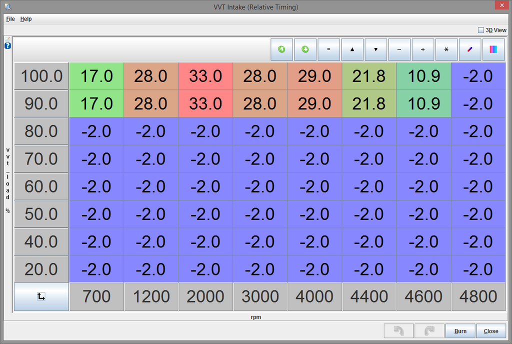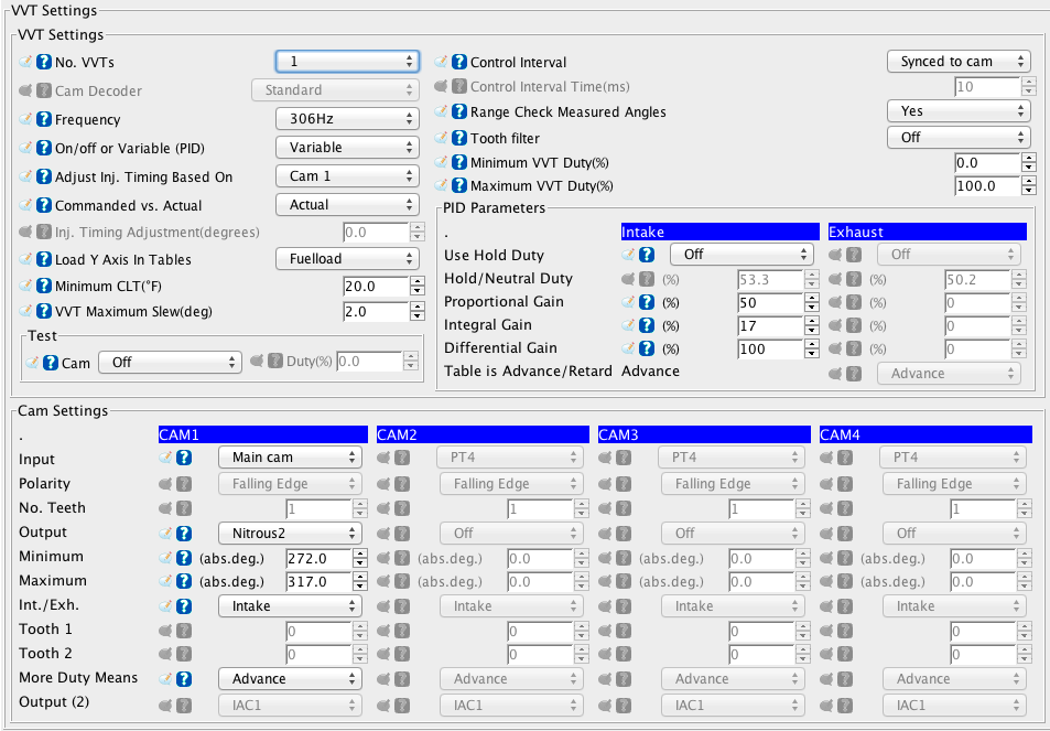 settings on vvt are: