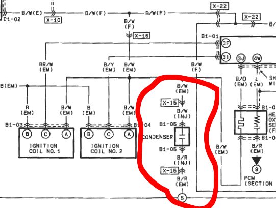 So the condensor should have one wire running to ground, and one wire running to the B/W wire which is 12v power from the main relay, correct?