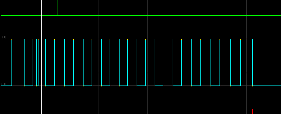 See how it goes low for a second there? It shouldn't. And thats why you get the loss of sync at the end, because it counts 35 pulses instead of 34.