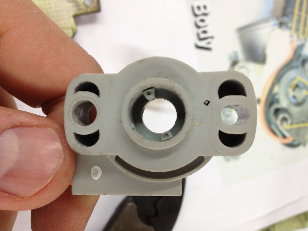 I started by removing the stock tps sensor and removing everything to get it to the bare plate, the two items that I kept were the actual plate and then the yellow plastic piece that fit on the throttle body shaft (dont have a picture of that)