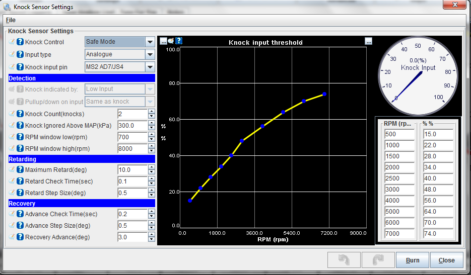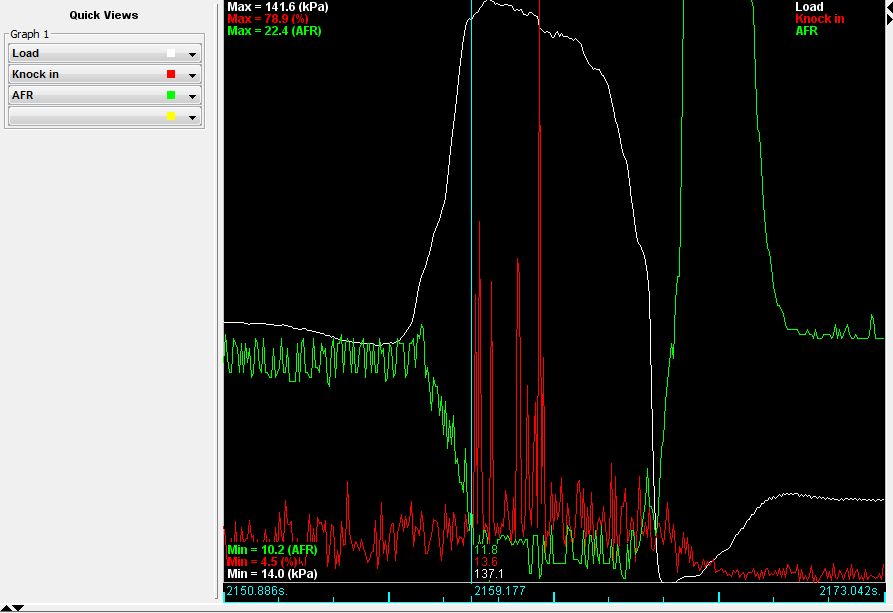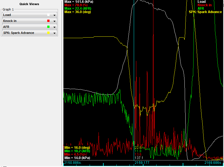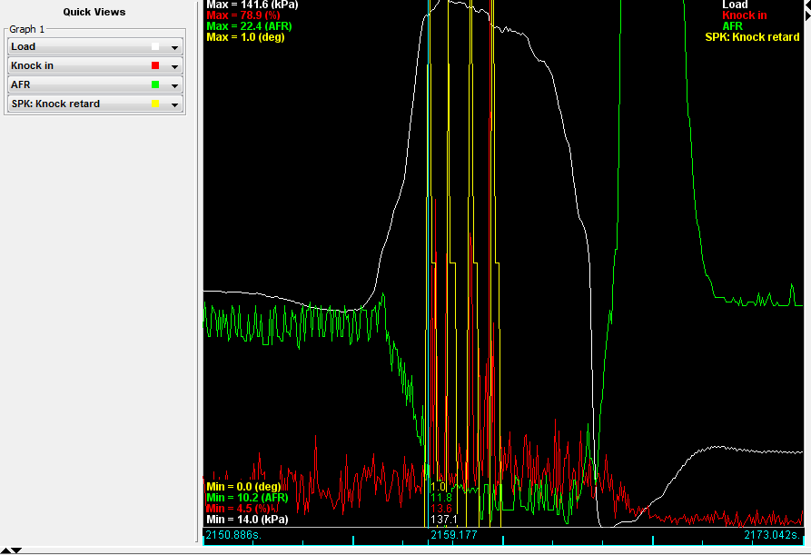 Here is a screen grab of the main incident. Both with and without showing knock retard, and one with spark advance. Also including my knock sensor settings and noise filtering.