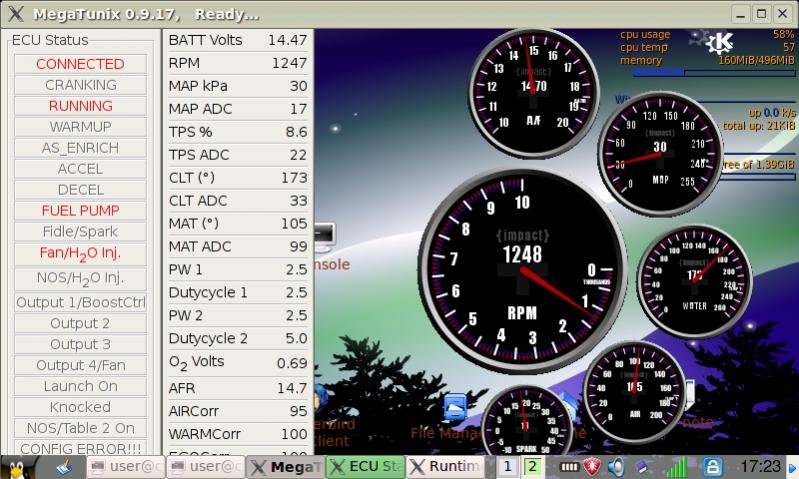 I finally gotten megatunix working on my Asus eeePC running Xandros Linux. It was a bitch, mostly because I'm somewhat a Linux n00b, and I had to learn how to add a bunch of crap to compile the code that the eeePC did not come with... I was also conacerned about using a serial-USB converter on linux, but the OS recognized the adapter immediately and Megatunix automagically found the virtual serial port all on its own.