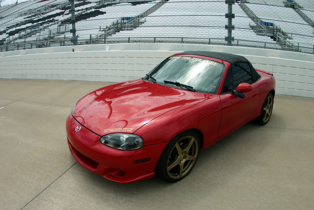 I have some ’04 Mazdaspeed Miata racing hart wheels that I’m looking to sell. They are plasti dipped with 4 coats, painted gold, then white, it can peal of if you want or do a better job then i did and re paint them any color you want.