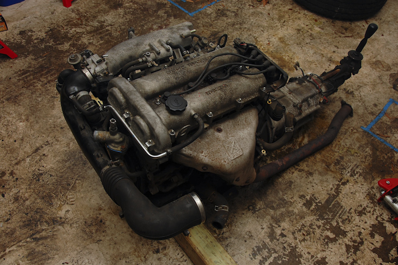I have a complete 1.6 miata engine and transmission for sale. It has around 137k miles. I pulled it out of a 91 miata I bought recenlty and will be doing a 1.8 swap (had the 1.8 for a while). The engine ran fine when pulled. Didn't overheat or smoke. Doesn't have any odd smells. Really, really dirty. Don't ask what the PO did to it. Clutch felt worn when I drove it (I only drove it to my home, about 25 miles).
