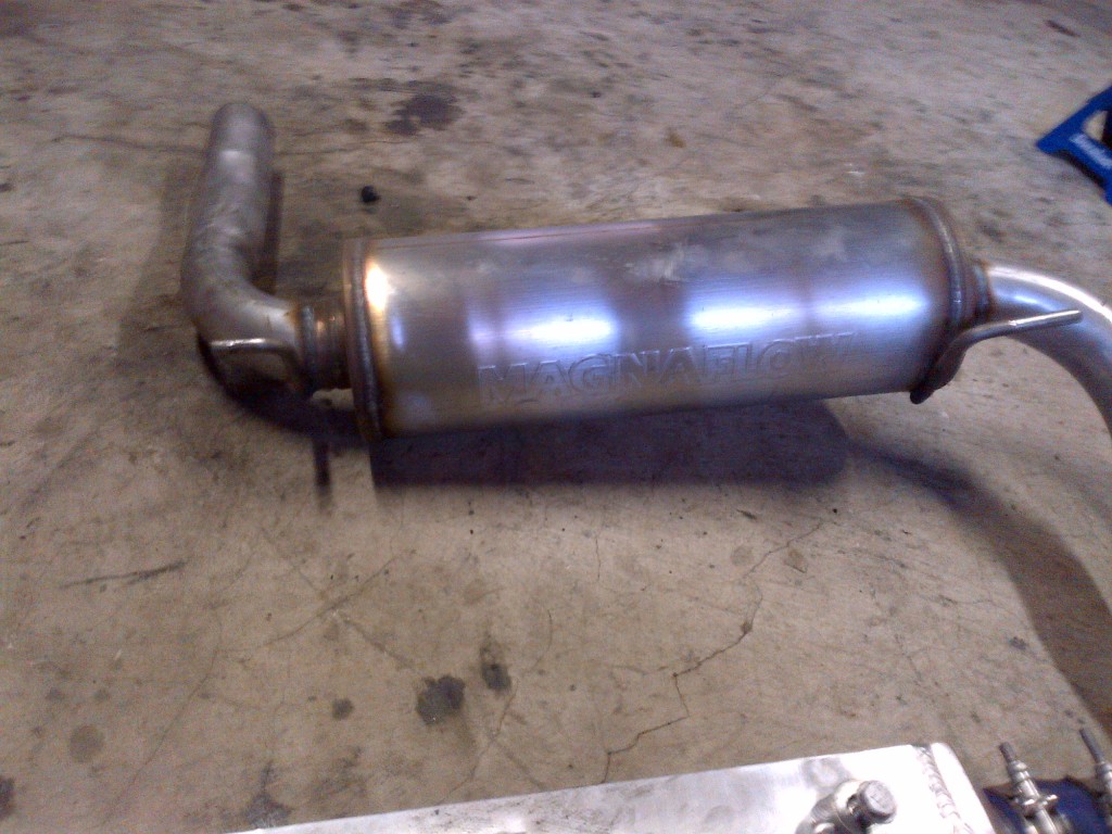 Full custom made exhaust (Cat delete, mangaflow muffler, looks to be about 2.5 in)