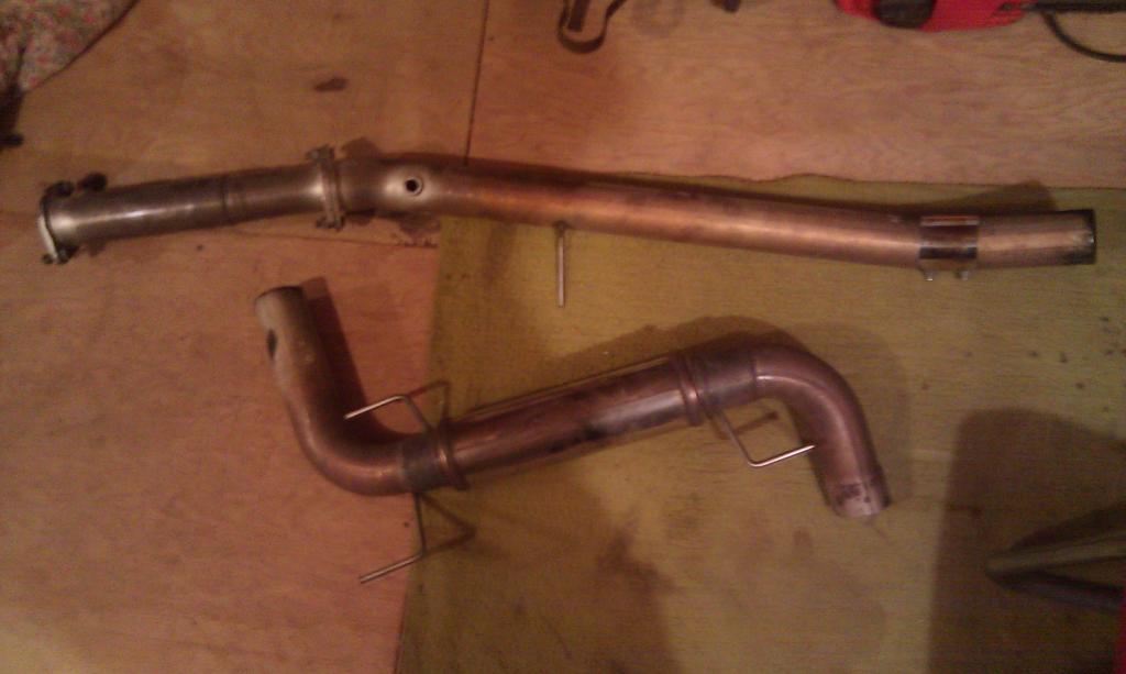 Custom EnthuzaCar full 3" SS exhaust, single Magnaflow resonator (no muffler, LOUD) - $400