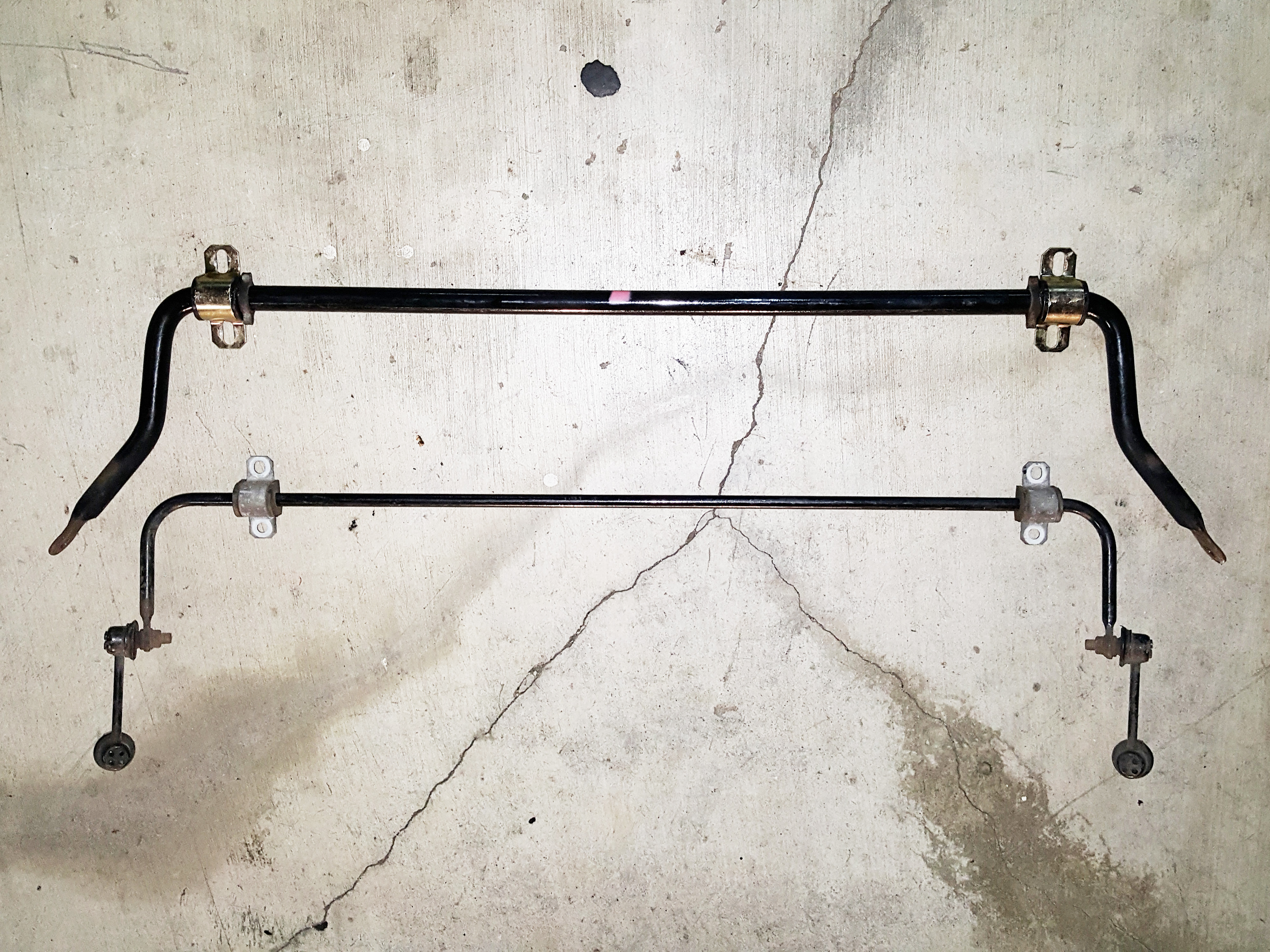 Sport Sway Bar Set Front (22mm) and Rear (12mm). Front comes with new Energy Suspension urethane bushings. No end links for the front. Rear comes with OEM bushings and end links. $120