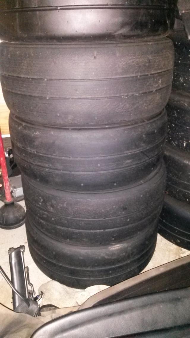 $300 205/50/15 Toyo RR. I bought these from a friend who switched from SM to PTE and I never ran them myself. If I'm remembering right, he ran about 1.5 weekends on them. One full NASA SM weekend (6 sessions) and a second weekend where his car broke on the first day. So 6-8 heat cycles. Lots of tread left; no flat-spots or abnormal wear.