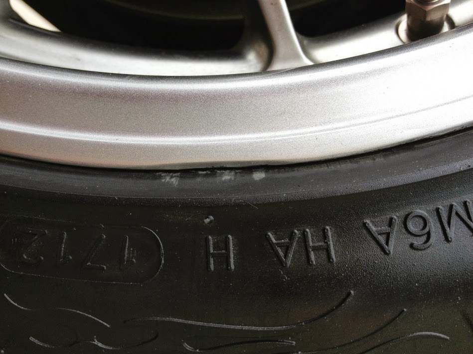 Okay, I went and tried to take some SUPER detailed pictures. It looks like when it was being mounted they rounded the edge of the lip ever so slightly (I actually looked pretty hard to find it when I went to go take these pictures). It even has dirt on the tire from the machine as you can see.