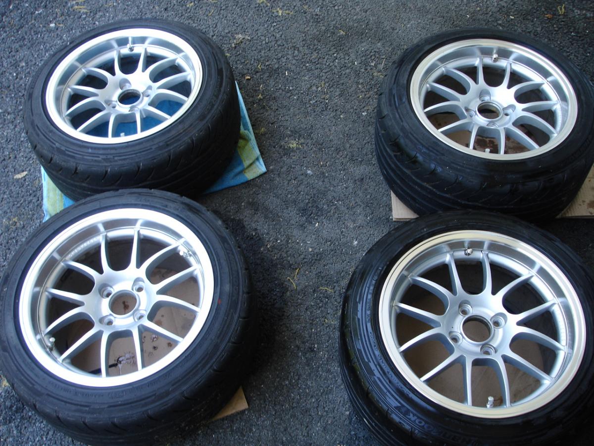 Selling my wheels. They have not been on the car since last fall because I've been too worried about them getting damaged/stolen in NYC. All I did for the picks was clean them up a little with a wet rag. They are in very good condition. The tires are 225/45/15 Hankook RS2. They have almost full tread on them, no chunks missing, or cuts, etc. I want $900 firm. Local buyers only. I don't want to ship them, don't ask.