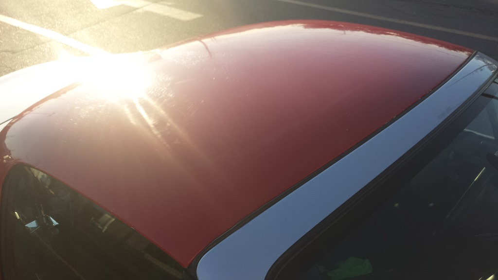 Paint is ok on this hardtop, however if you want it perfect I recommend repainting it as there are spots of fade and also scratches. there is one part above the passenger window where the side has chipped off.