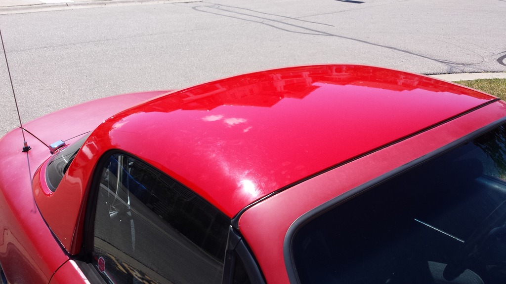 This top was from a 1990 miata and was repainted red, Good condtiion, Paint is good shines but has 3 small dime size rock chips (2 just below rear glass and 1 on pass side ) and small scratches. no damage to hardtop. No defroster, or headliner. I will throw in stirker plates.