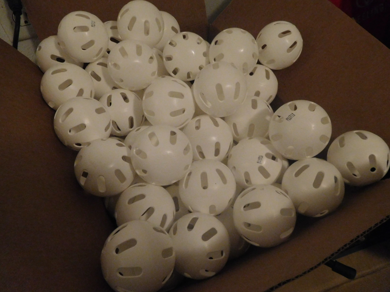 Wiffle ***** with holes on each side, made of polyethylene, perfect to use as baffles in a meth tank to prevent meth from sloshing around, $20 per dozen shipped.