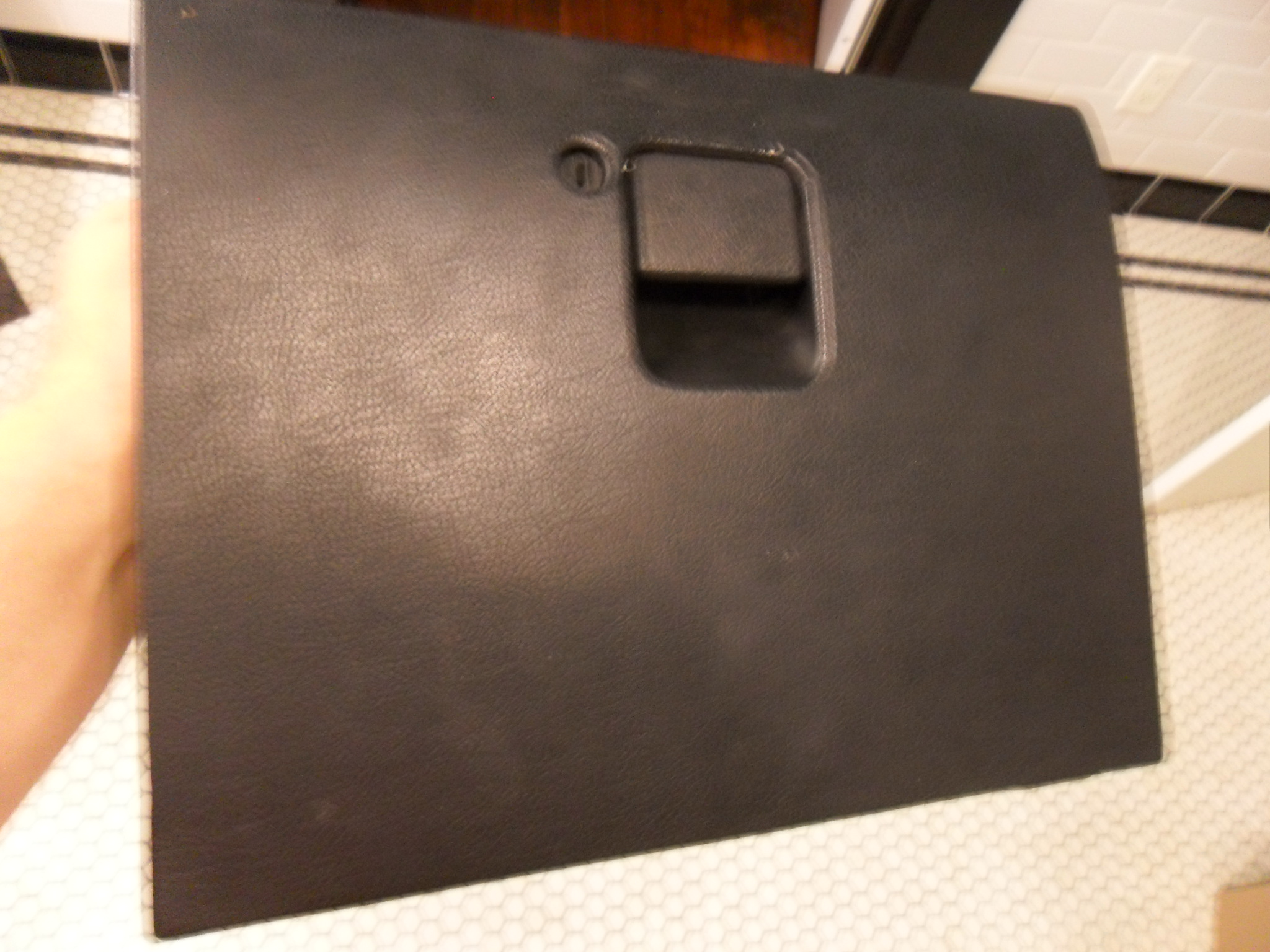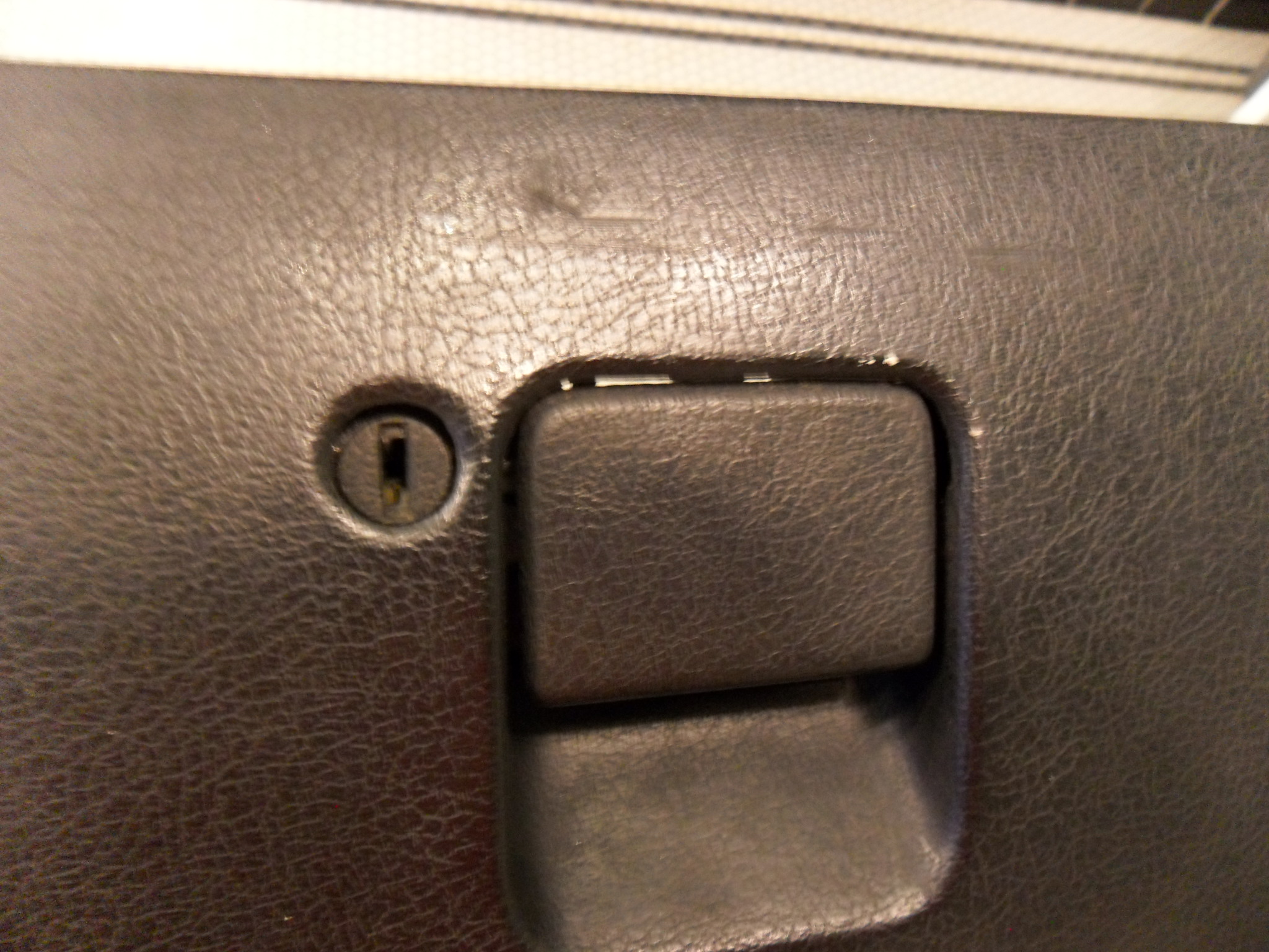 The glovebox is in a pretty good condition, there is some Gorilla tape on the end of the inside panel to fix the plastic that broke there.