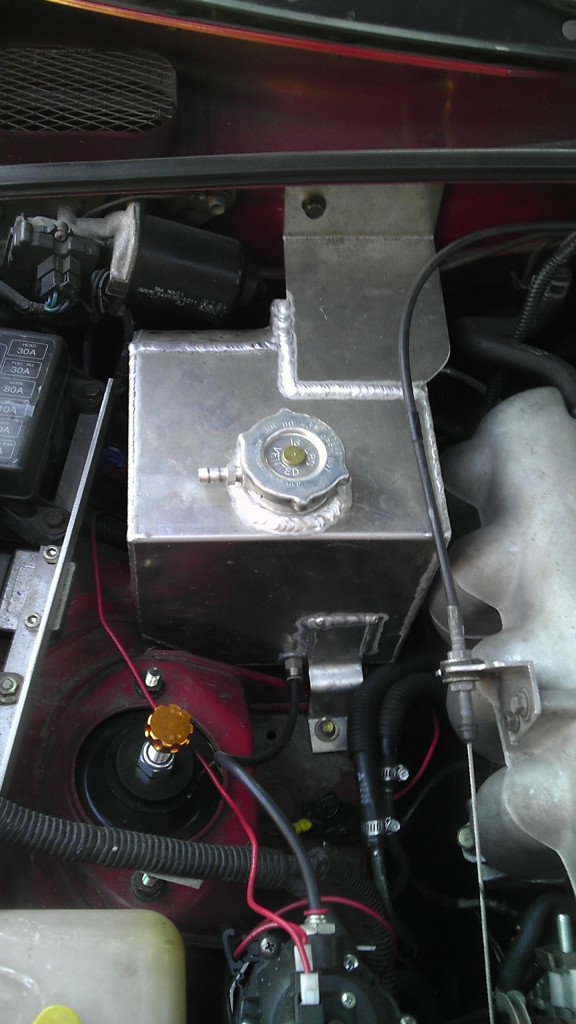 First one I have is mounted in the engine compartment holds over a gallon and tapped for 3/8 npt. 60$