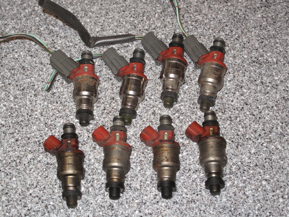 Put a deposit down on a kmiata kit so I don't need turbo parts anymore. These were bought used over the forum and have not been cleaned as far as I know. All 8 are p/n 195500-2010 (high impedance 460cc). 1 set has clips but the set with clips has 1 retention tab that is broken off. Still have to pull hard on the connector to remove but something to be aware of.