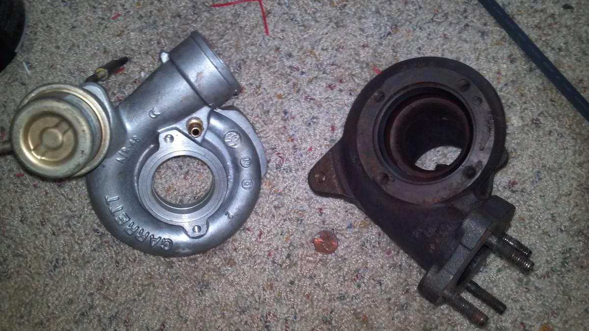 The good: turbo is in pretty great shape. Shaft play is negligible. I had planned on using this one on my car, but the flanges are odd.