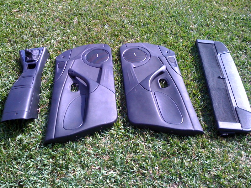 Both doors have the tweeters and driver door has the powerlock switch w harness. Center console is missing the powerwindow switch. Shifter boot is not torn. Windblocker has a small dent in the passenger side top. It has two speakers and what appears to be a small amp with harness. All part are used so expect a few scrapes. Parts are located in South Florida. Pickup is free. All prices are NOT SHIPPED.