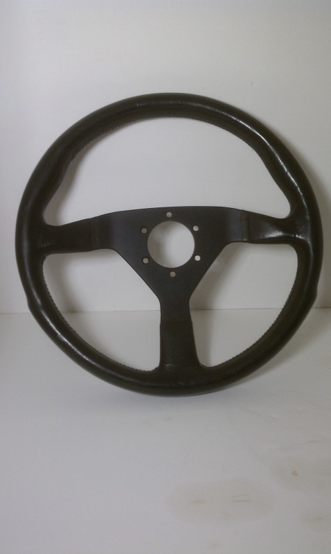 350mm diameter Momo Monte Carlo. Great condition, classic shape. I replaced it a slightly smaller suede wheel in Theseus, but it is the perfect street car wheel.