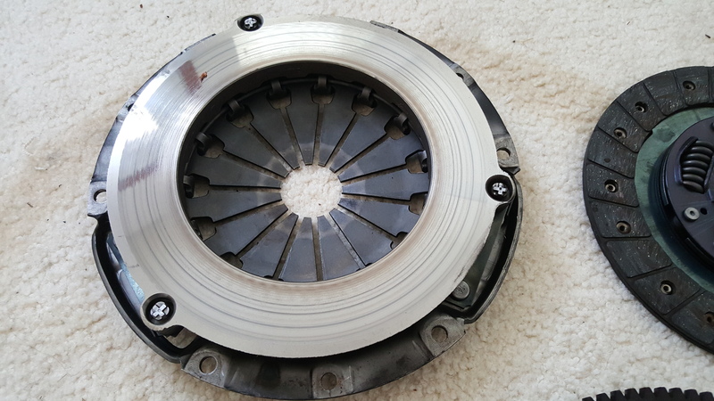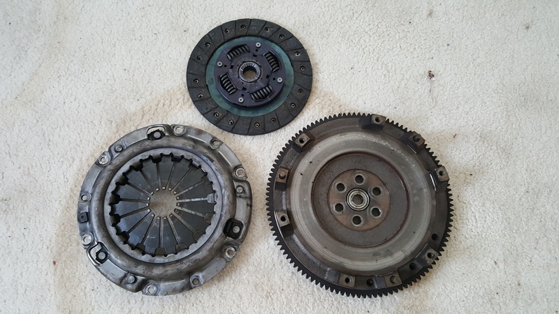Exedy Stage 1 clutch and stock flywheel with ~500 miles for 1.8L. Nothing wrong with it, I am just doing a 1.6L clutch set up. No chatter at all.