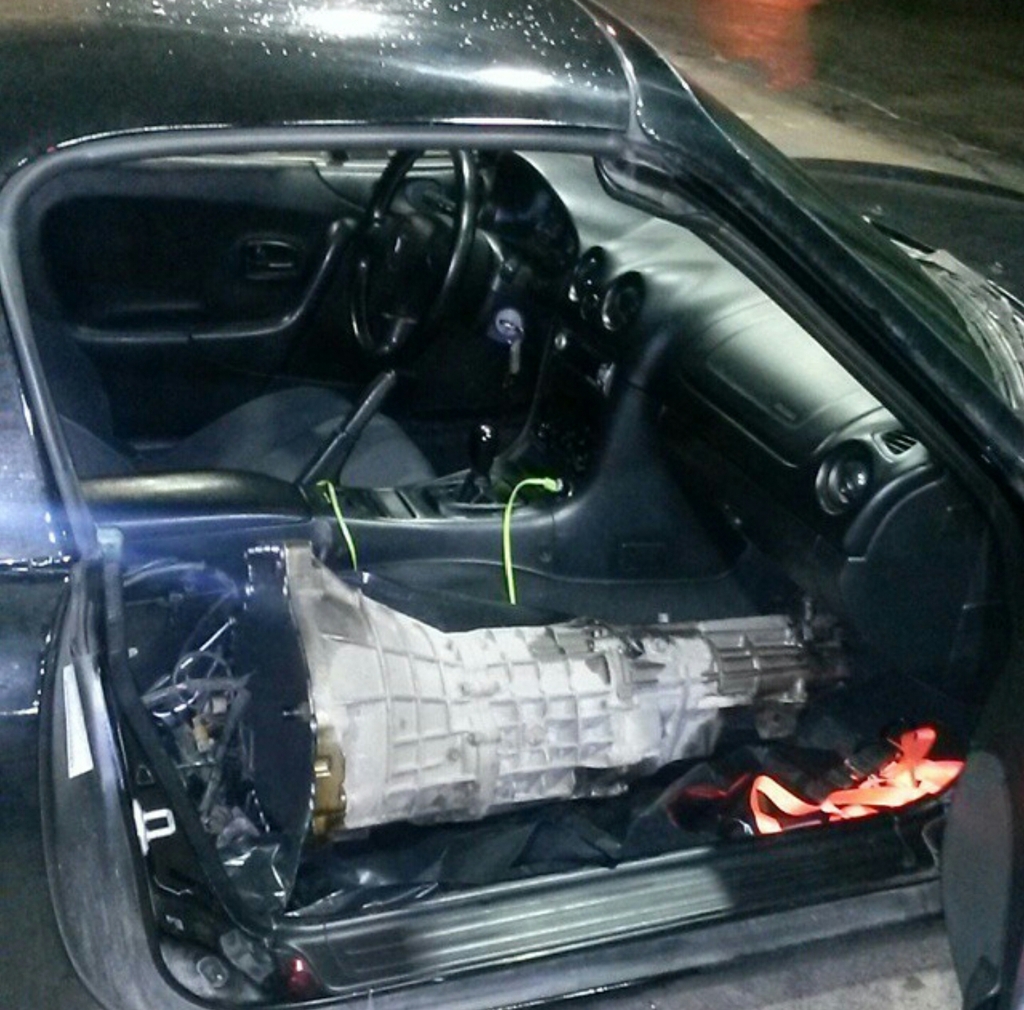 Just FYI you can fit a 6 speed in the passenger compartment. Put the seat all the way back, and put a sheet over it. Then you should be able to to put the big open section of the trans on the floor area with it leaning back. Carried the last 6 speed I bought 4 hours like that with no problems.
