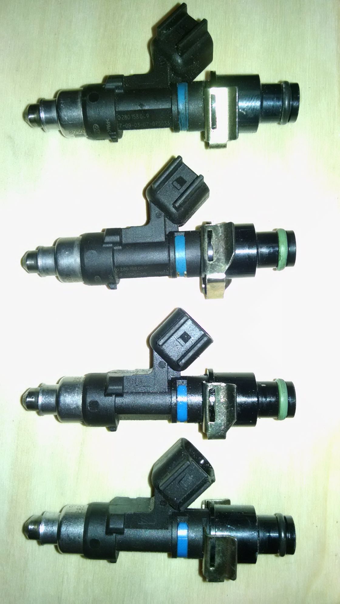 Set of four Fuel Injector Connection injectors with pigtails available.