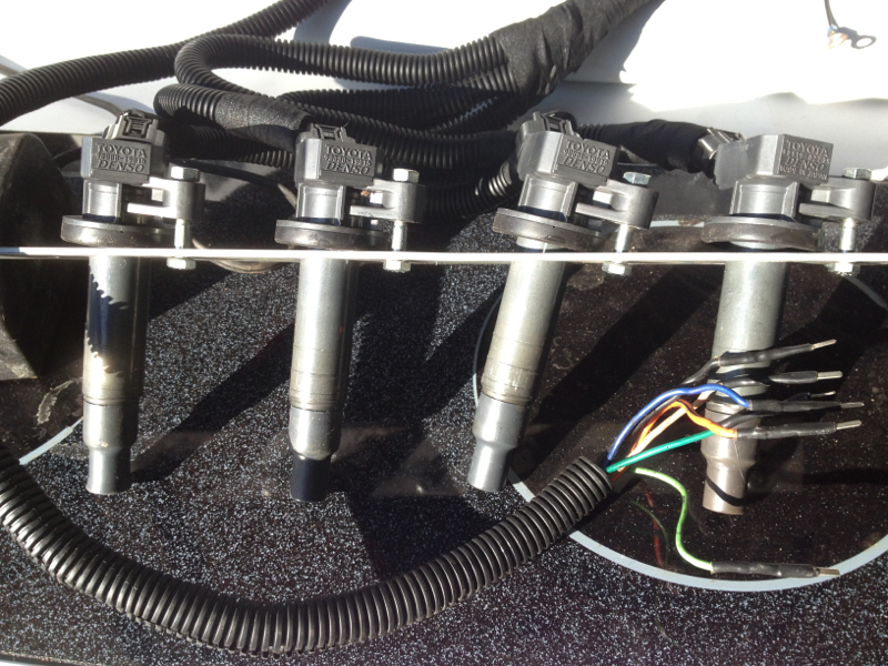 Next is my Toyota denso cop kit. This is a pnp kit I put together myself. I made the harness to just plug into the stock igniter harness. The coils are oem denso's and cost my $70 a piece. I also made the bracket out of thick aluminum stock and it uses the top 3 valve cover bolts to hold it down. This is also new and never used. Asking $250 obo.