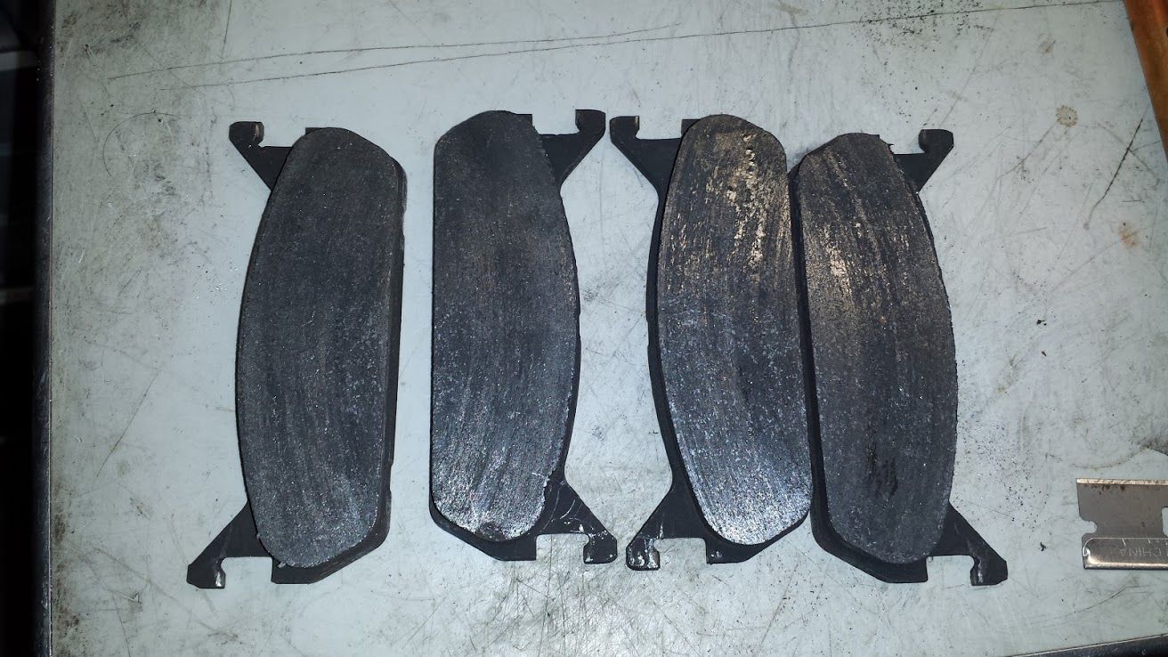 Off the XP car. Used to track the car when it was still driven on the street. Moved to some left over Panther Plus (AX6) pads from another racer. These have ~1/4" of material left. Looking for 55 bucks shipped.