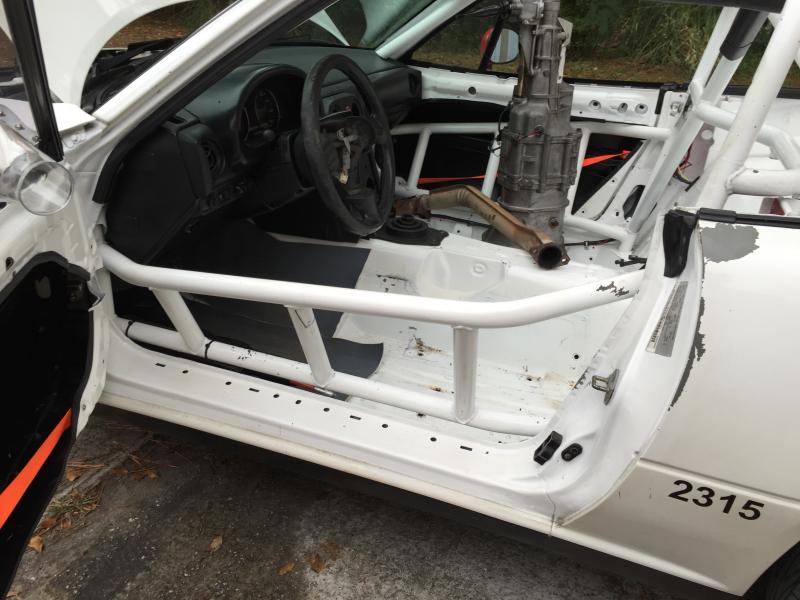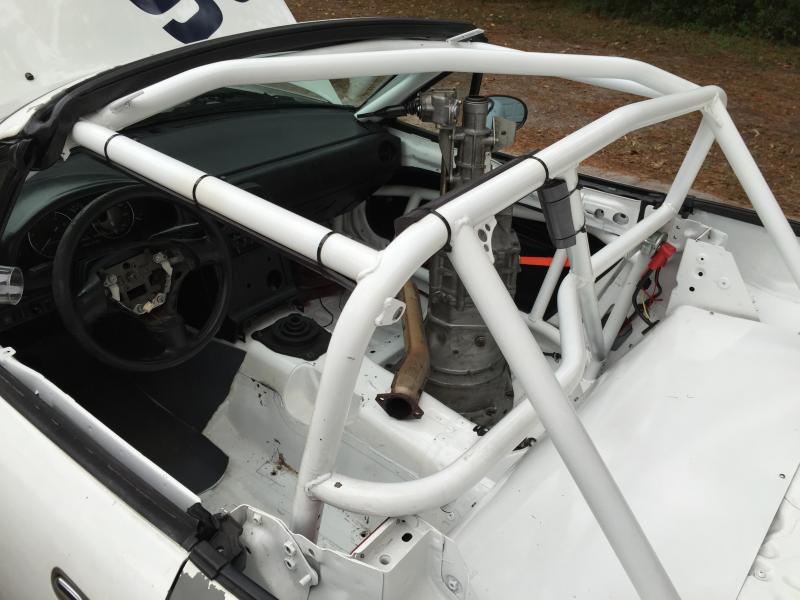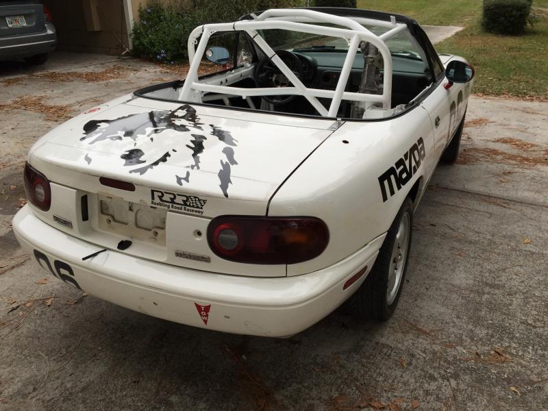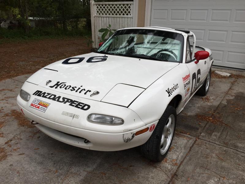 For Sale: 93 Mazda Miata Racecar I am selling the car as pictured, as a rolling chassis. The car was previously a Spec Miata race car but can be taken in any direction the buyer would like. The car has an 8 point Miatacage.com cage that was professionally welded in. This cage would be legal for most Drift series, Chumpcar or SCCA/NASA Road Racing in a number of classes. This is the perfect candidate to be built back into a racecar or install your engine of choice in to make a street or track day car. I have a clean title for the car so it could also be registered and street driven. The car is being sold without an engine but does include a freshened up transmission and everything (other than the engine) needed to get it running and driving. All the suspension bushings have been replaced with new Mazda units within the last year. The car also comes with a track ready brake package including East Street calipers, Carbotech XP10/8 brake pads and braided brake lines. Asking $3500 OBO Call or text Damon 9o4-six two six -4283 The car is located near Jacksonville FL.