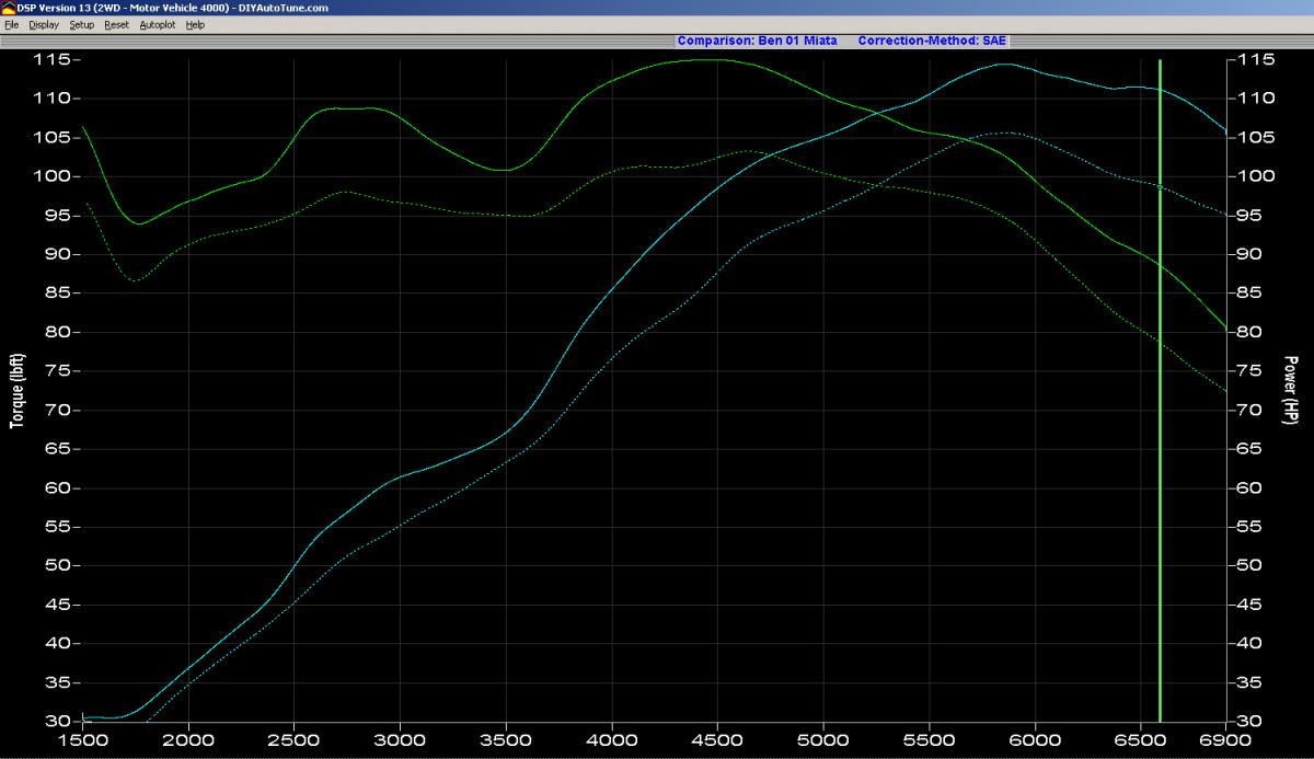 Here is a little info that might help your sale. These are dyno results from my stock 01, before and after RB header install. Header was changed while car was still on the dyno.