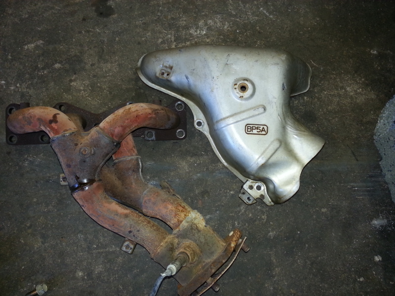 JDM exhaust manifold - $40+ Ship. I have the heat shield, but I do not have the lower down-pipe section. You will need to find one separate or have a shop weld one up.