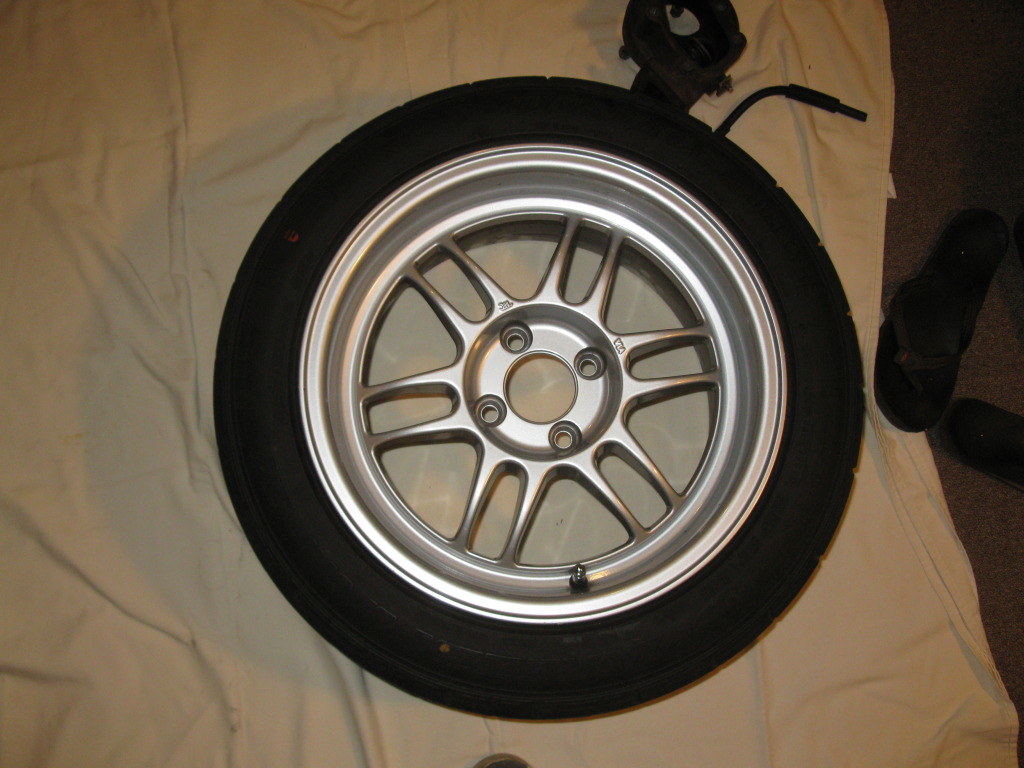 Panasport gc8 13x8.5 et11 wrapped in shitty 205/60 tires that have under 3k miles on em. one was bent in the wreck, looks very fixable. 10lb wheels. I can also include hoosier slicks