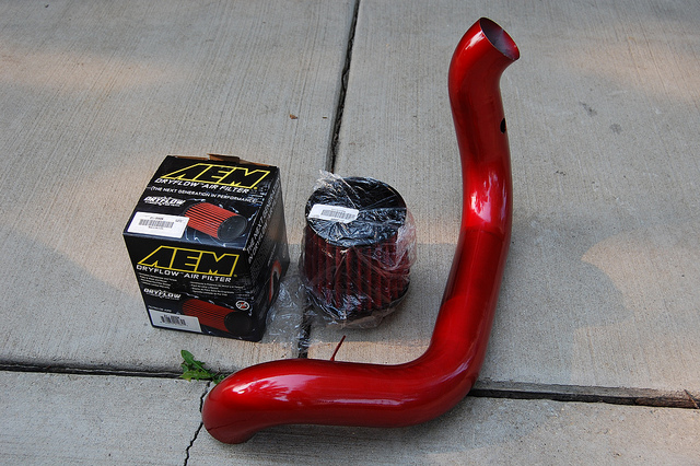 Selling a brand new AEM dry flow intake w/ a intake pipe. Not sure what car the pipe belongs to but a little sawzall and epoxy action and BOOM fits anything. This is the intake that requires no oil and can be cleaned with just water and soap.