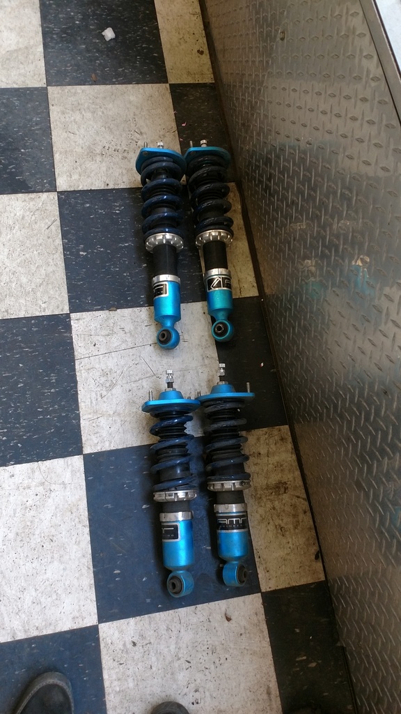 Good working order. Removed when we upgraded to MCS dampers. Shocks saw about 70 hours of endurance racing and not much else. No leaks or damage. Spring rates are Hypercoil 700/400. Can go quite low. Have spherical upper mounts front and rear. Looking for 800 obo, retail is 1425.00. built and serviced up here in the Pacific NW.