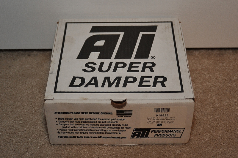 - BNIB ATi Super Damper from Flyin' Miata, which includes their belt guide that helps prevent premature timing belt wear, this is not included from other retailers. Fits all 1994-05 Miatas or you can also use it on a "long nose" 1.6 if you change the water pump pulley and alternator to a ribbed belt. This is the no timing wheel option, which is required for 96-05 cars. SOLD