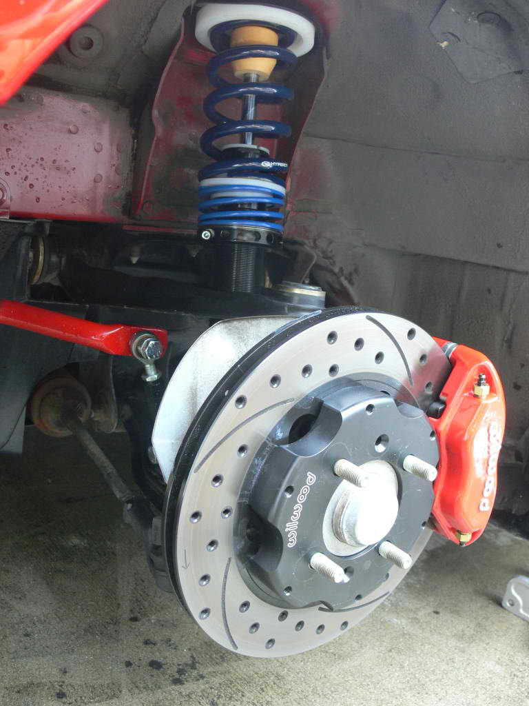 Brakes = Miata sport calipers fully rebuilt and powder coated red with DBA 11" drilled and slotted rotors and SS lines rear. Also comes with a Wilwood adjustable proportioning valve. $800 which is just about what the Wilwood fronts would cost. BUY THIS WEEK!!!