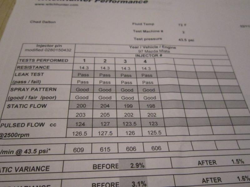 Purchased these Bosch #0280-150-432 250cc injectors modified to flow 600cc from pdexta back in January '14 and will no longer need them. I sent them to Witchhunter Performance in February to have them cleaned, rebuilt and flow tested. I have about $200 in them and that is what I am asking, $200 obo shipped, pnp pigtails and flow chart included.