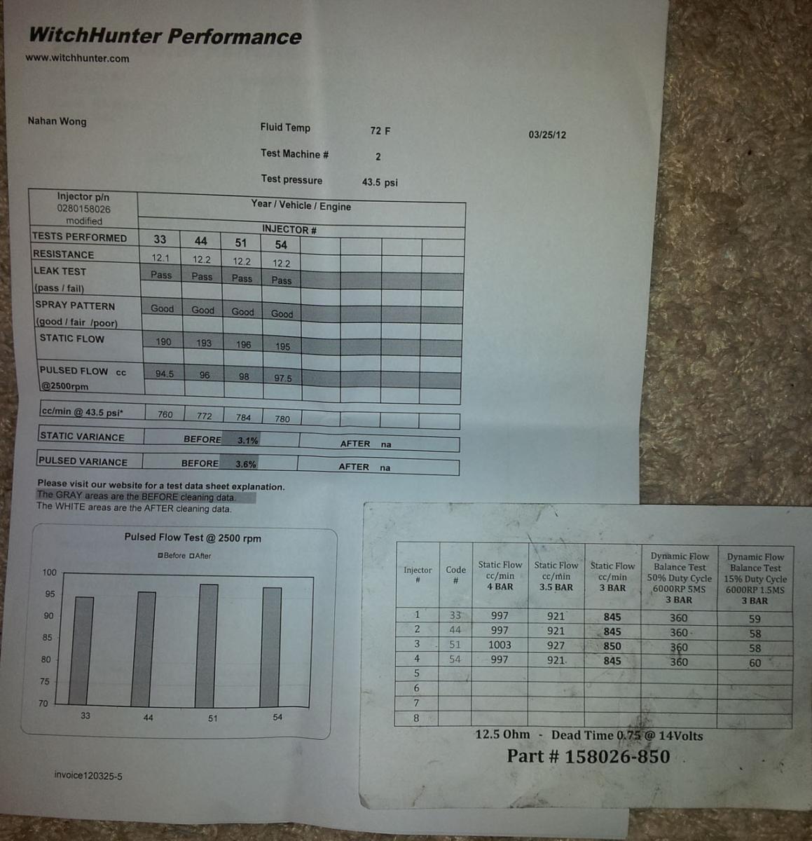 I have a set of Bosch EV14 injectors modified by fiveomotorsports. I bought these about 6 months ago, however I've put less than 1k miles on them. Car has been down for awhile now and I had them flow tested at Witchhunter