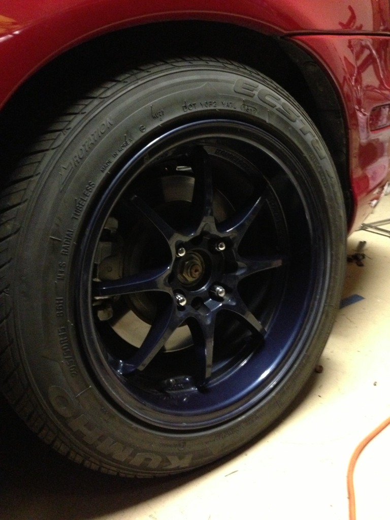 2. Konig Flatouts 15x8 +25mm: Currently wrapped with Kumho Ecstas 205/50/15's with a lot of tread left. Wheels are blue, but could easily be painted. No curb rash on any of the wheels, all are clean. Looking for NB2 wheels as partial trade + $300 OBO or straight sale (make offer).