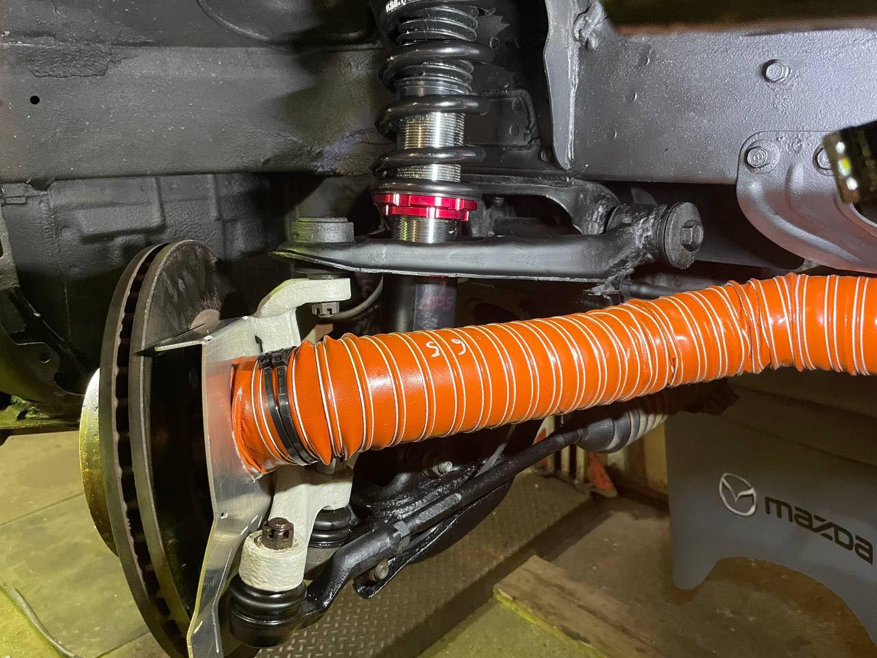 I came across a new supplier in Europe called Foxhole Fabrication Gmbh, they have created a more improved design for a 2.5" brake duct to fit NA/NB. The modified design alters the intake and brings it closer to the center of the rotor for more efficient cooling and reduced rotor cracking possibility.