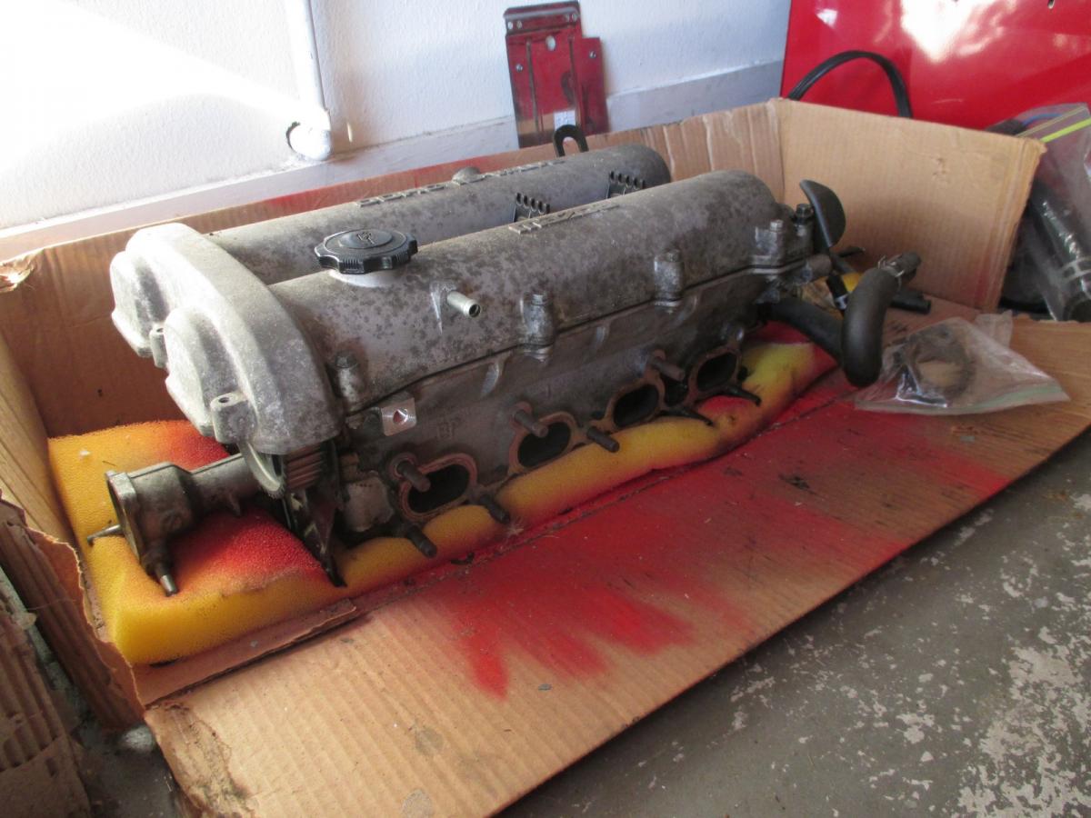 R package head, almost fully dressed. Cams, valve cover, front water neck (but no CAS). Legend has it that these are super-crazy port matched. But probably not. $250