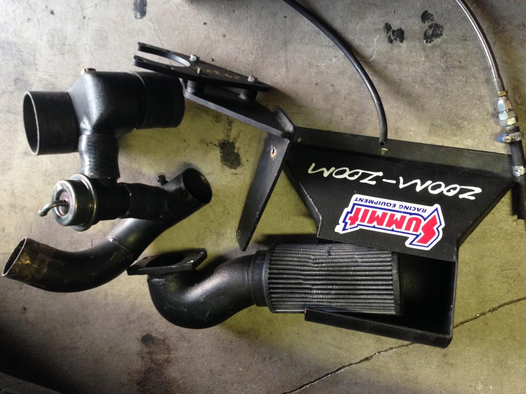 $80- Flying Miata Intake piping parts + BOV + filter + intake duct. This is from a FM kit I bought. It includes everything seen in the picture without the turbo assembly. This uses the stock 1.6 AFM (mounting adapter included in kit) and the stock FM BOV (bosch I believe?) This would be great as a starting block for anyone looking to piece together their own intercooler set up with recirc BOV (Turbo Manifold and DP NOT FOR SELL)