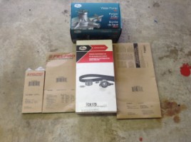 7: New Gates water pump ( high flow cast impeller that 949 sells) , timing belt , felpro gaskets ( valve cover .waterpump, water pump inlet ,oil pickup , oil pump,crank seal, camseal) I bought for 01-05 VVT engine some parts do fit other years .sold