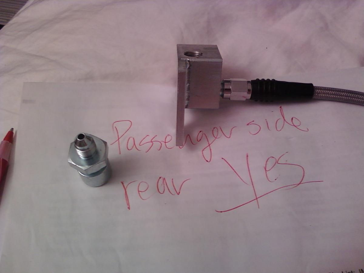 so when installing the brake lines, you will notice that the fronts and rear driver side has a bracket that has a hex cut out where the adaptor piece will fit.....